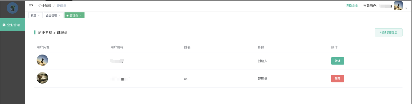 不同企业添加管理员需要先把员工添加为该企业的员工,才可以将其设置为对应企业管理员