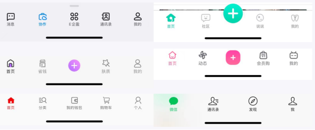 1. 标签栏icon的设计尺寸一般不小于44px,常用尺寸是44*44px,60*60px、保证正方形、圆形、纵向矩形、水平矩形视觉保持一致大小。(后台有自定义的icon、则无需在重新设计)
