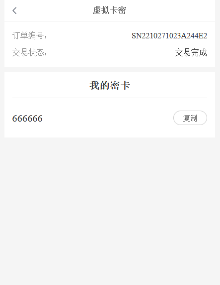 订单已完成状态-右下角点击更多--查看卡密按钮-进入虚拟卡密界面,可以直接复制卡密(至于卡密如何使用,主要看客户用于在哪方面)