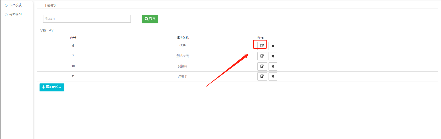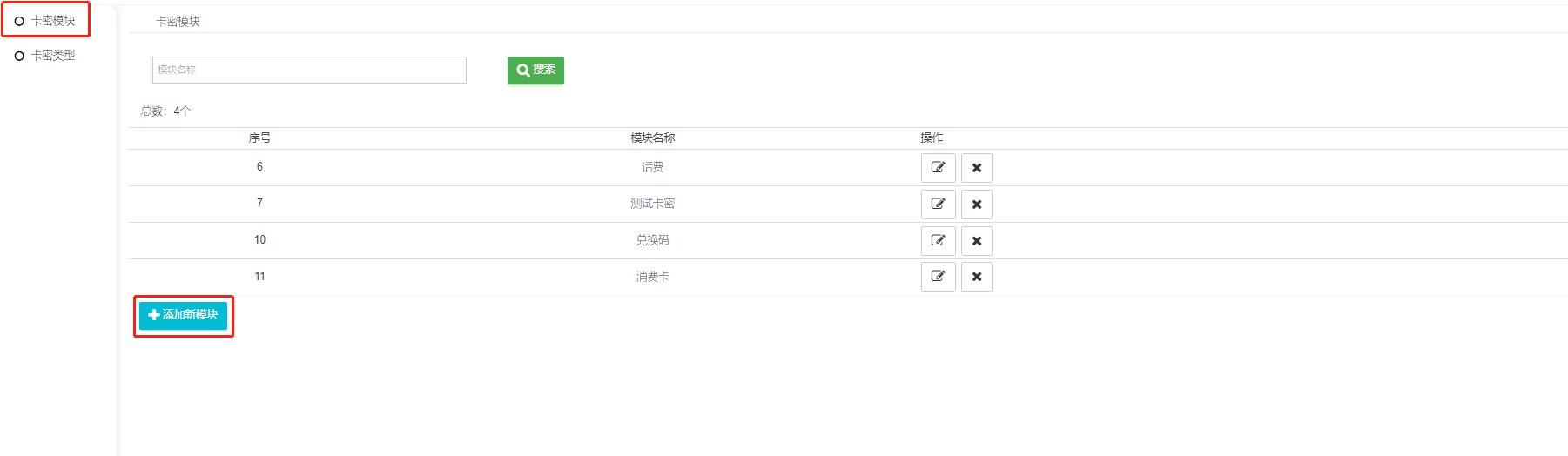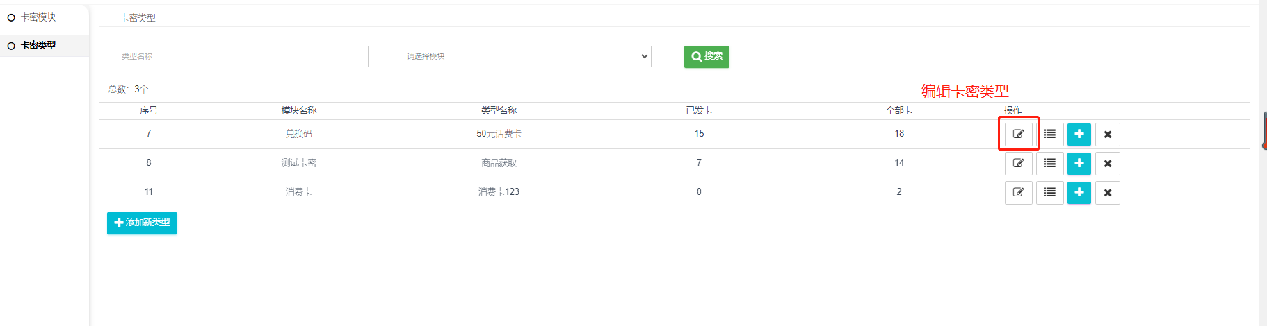 二  、添加好卡密模块,查看卡密类型列表