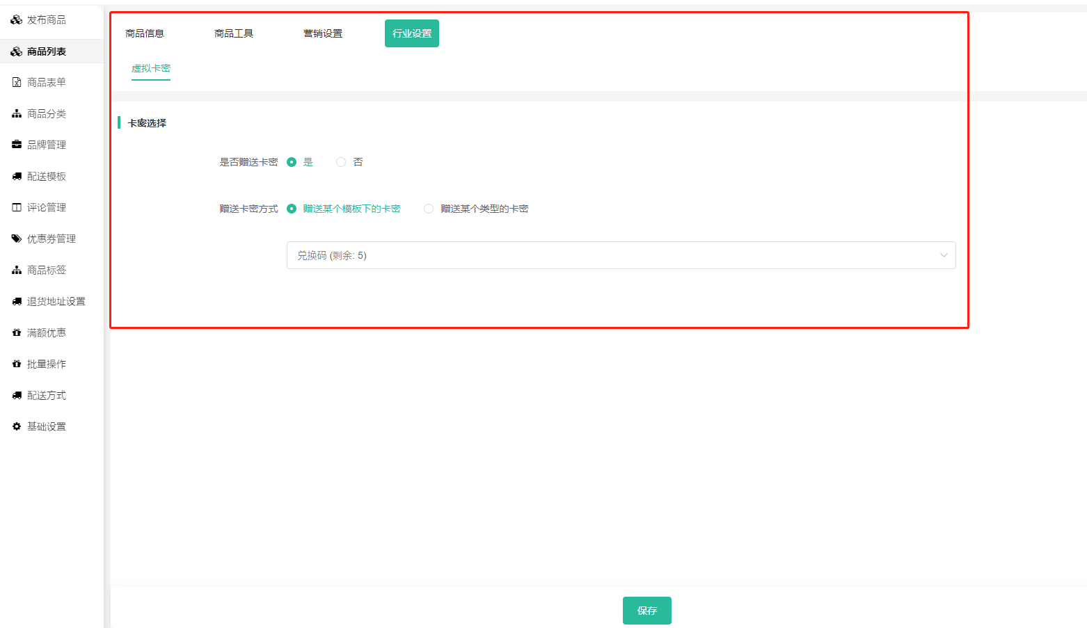 三 、 商品列表需要--编辑商品-虚拟卡密,购买这件商品是否赠送卡密