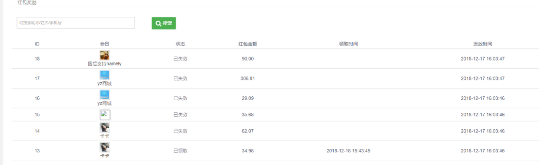 点击操作--可以查看经销商领取红包奖励详情:超过设置的失效时间内未领取则自动失效,退还给平台